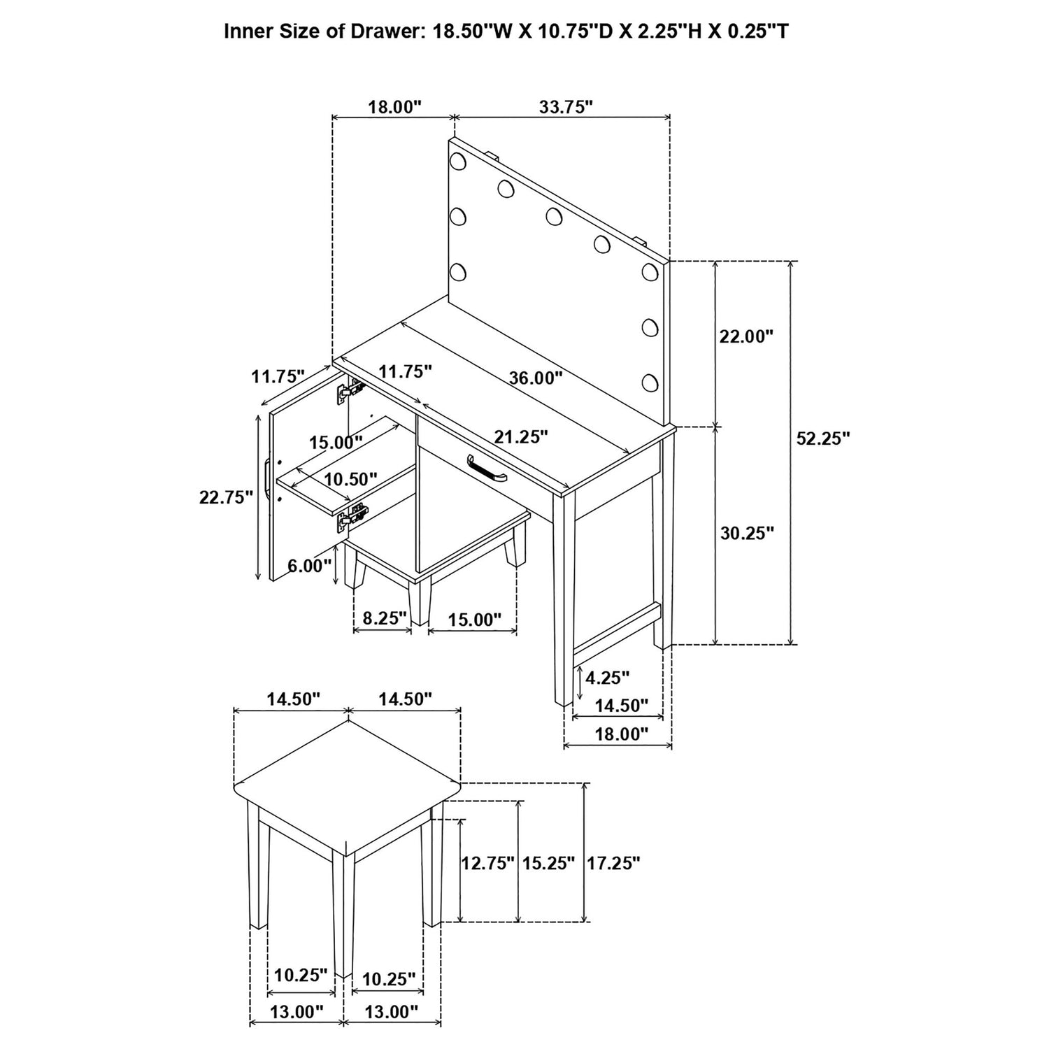 Elijah - Vanity Set With Lighting And Stool - White is backordered and will ship as soon as it is back in stock.