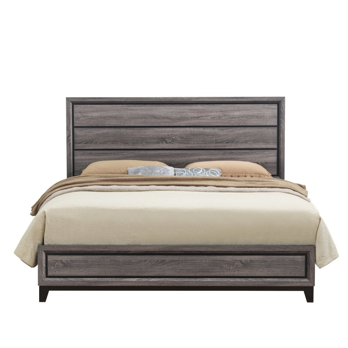 The Rivian queen bed offers bold contrast and clean design with a panel-style headboard in black and gray. Crafted from durable rubberwood, it features tapered legs and sturdy framing for everyday use. Its casual style pairs well with a wide range of modern or transitional bedroom décor. Box spring required.