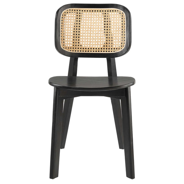 Wood Dining Side Chair with Woven Rattan Cane Back