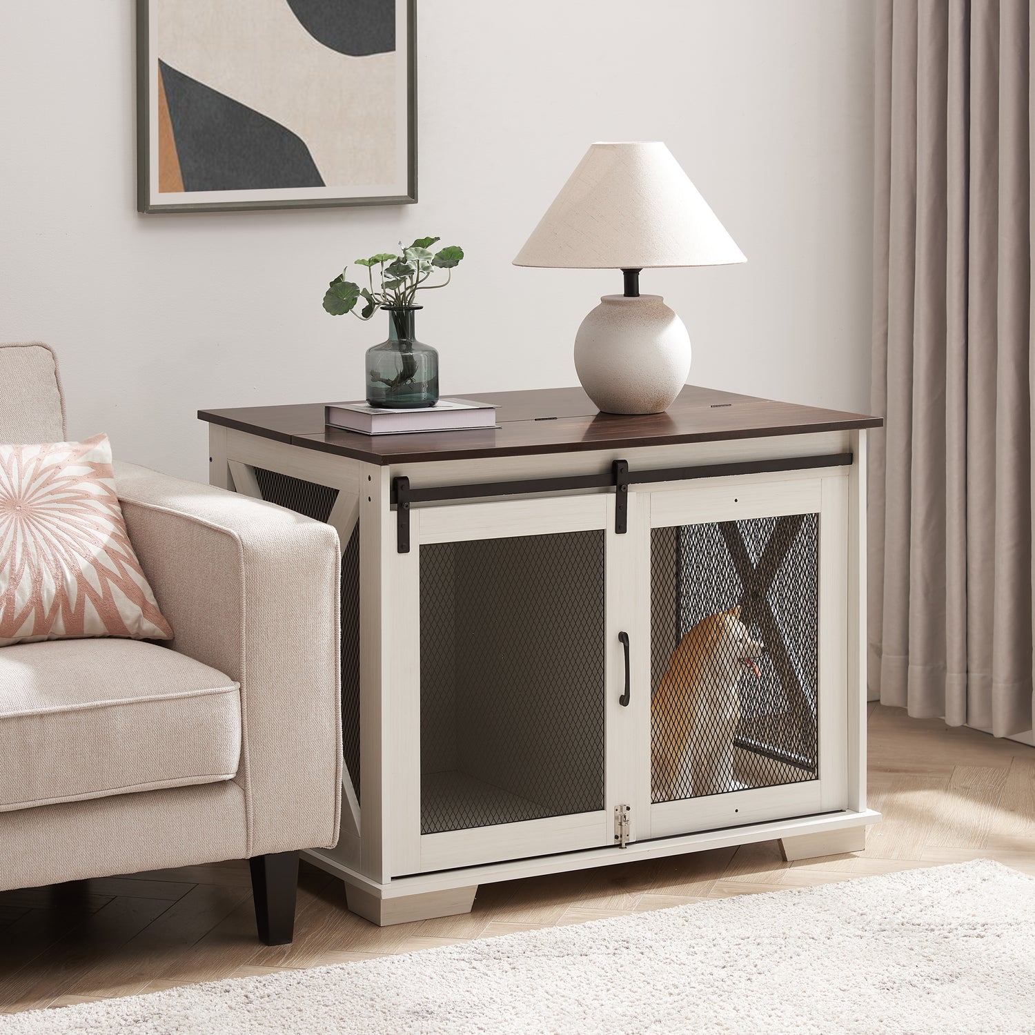 Beaufort 37-Inch Farmhouse Dog Crate with Sliding Barn Door and Flip-Top Interaction Panel
