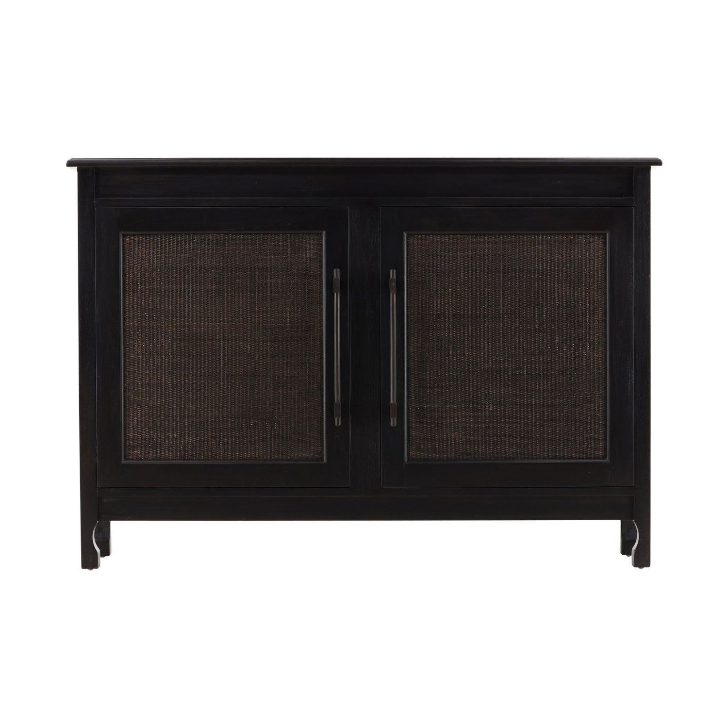 The Dalia Cabinet effortlessly combines timeless craftsmanship with striking, modern design. Made from sustainably grown mahogany, this cabinet features a rich hand-painted black finish that creates a bold, dramatic effect. The front is elegantly adorned with intricate rafia detailing, adding texture and a touch of natural warmth. Paired with sleek metal hardware, the cabinet exudes sophistication and durability. Inside, a removable shelf offers flexible storage, making it perfect for everything from books and décor to linens or collectibles. Whether placed in a living room, dining room, or entryway, the Dalia Cabinet is a statement piece that blends sustainable materials with high-end design.