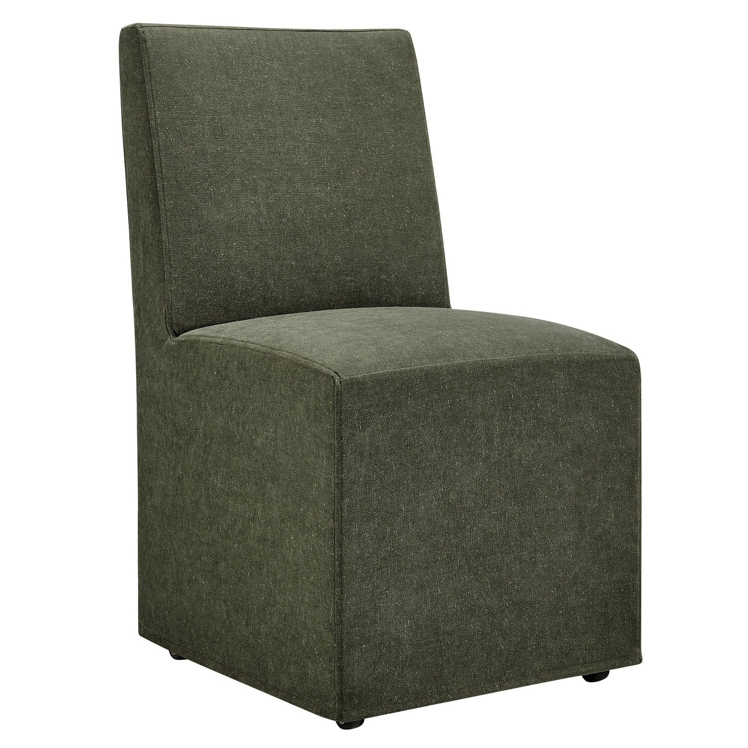 Linen-Blend Slipcovered Rolling Dining Side Chair - Sage is backordered and will ship as soon as it is back in stock.