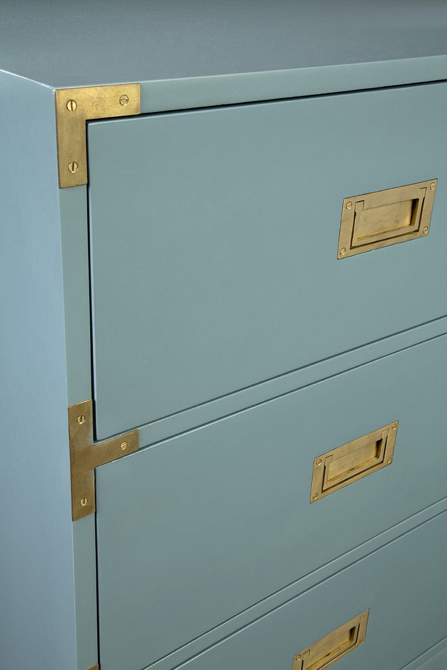 Crafted from solid mahogany, known for its durability and timeless appeal, this chest offers both style and functionality with the addition of soft-close drawers. The smooth, satin finish enhances the natural grain of the wood while showcasing a palette inspired by the mesmerizing shades of the sea— from tranquil blues and soothing