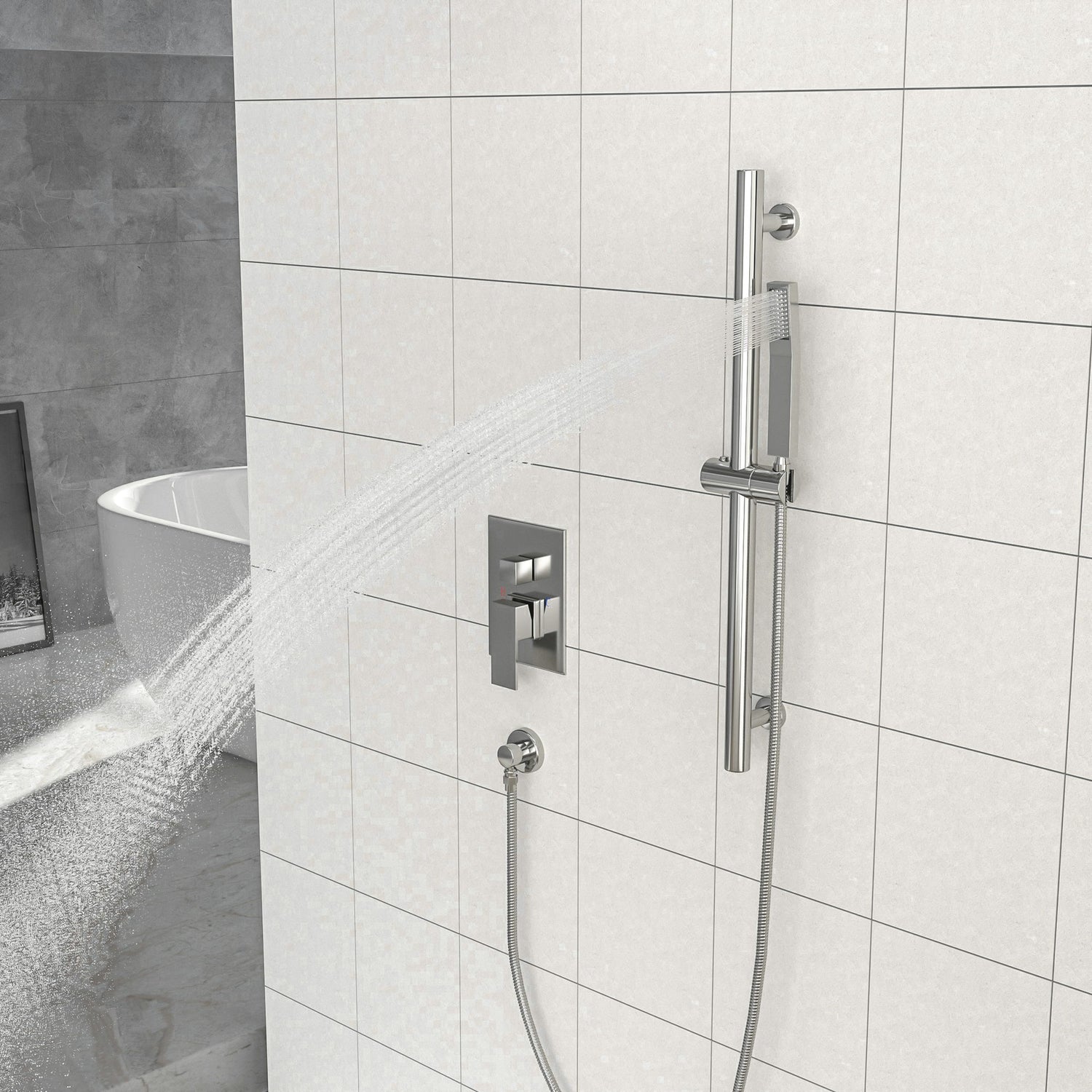 - Comprehensive Set: Includes a 12 inch square rain shower head, shower arm, handheld shower head, slide bar, and more.