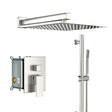 Wall Mounted Shower System With Adjustable Slide Bar And Rough In Valve, 12" Square Design - Brushed Nickel