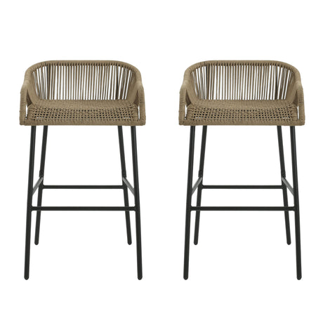 La Push - Outdoor Rope Barstool (Set of 2) - Black / Brown