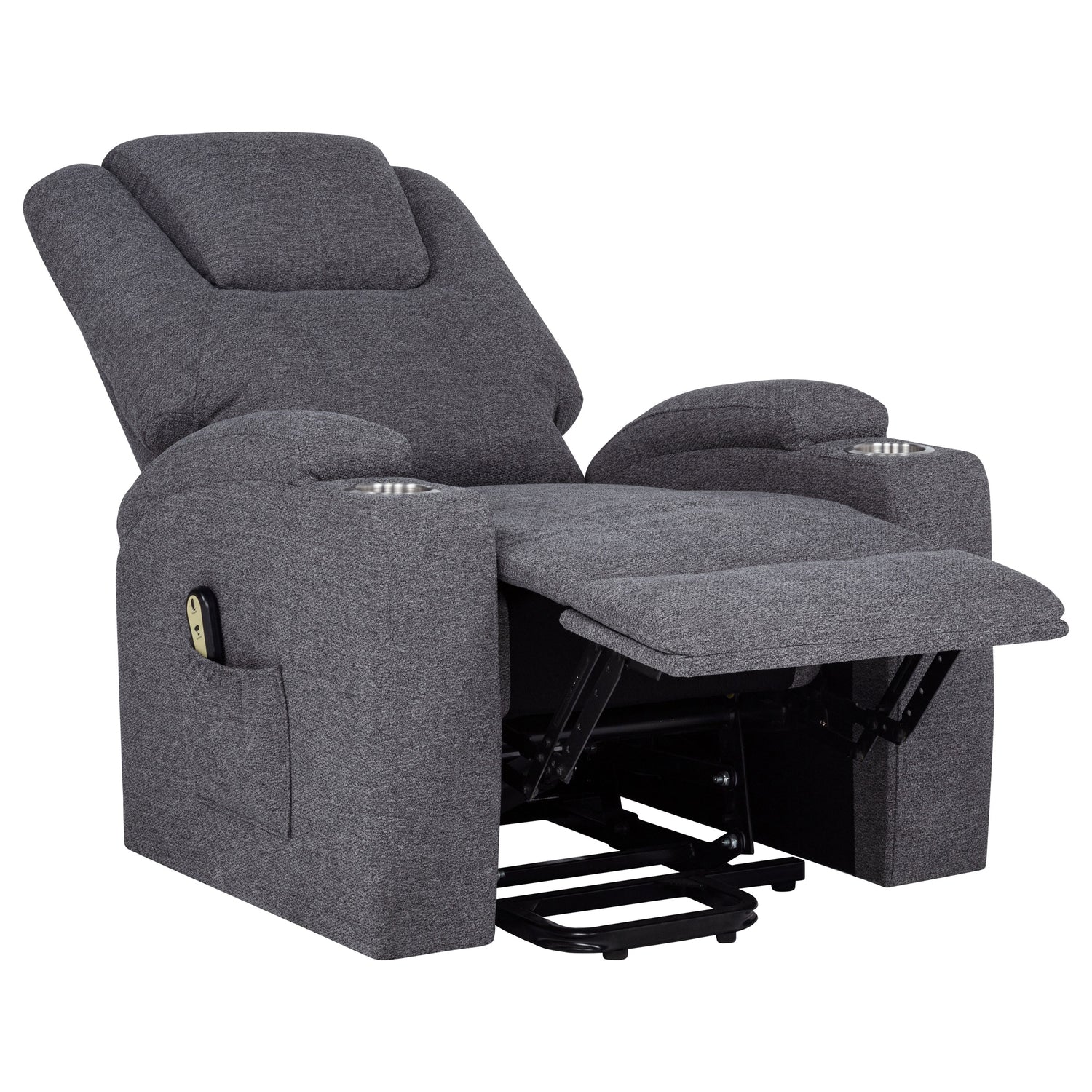 Thoughtfully designed with dual removable stainless steel cup holders and convenient side storage pockets, this chair provides practical utility alongside serene support. The lay-flat mechanism and remote control activation make it an ideal haven for everyday unwinding and restful relaxation.