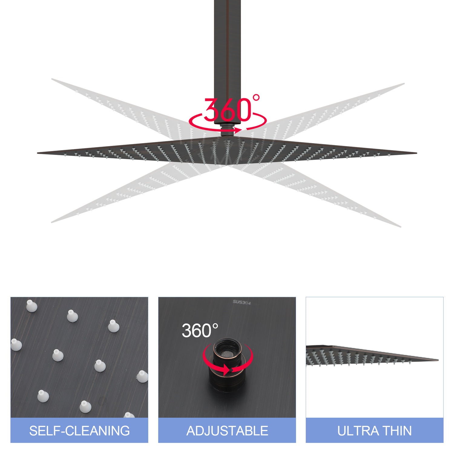 - Full Body Coverage: 16-inch square design ensures a comprehensive and immersive shower experience.