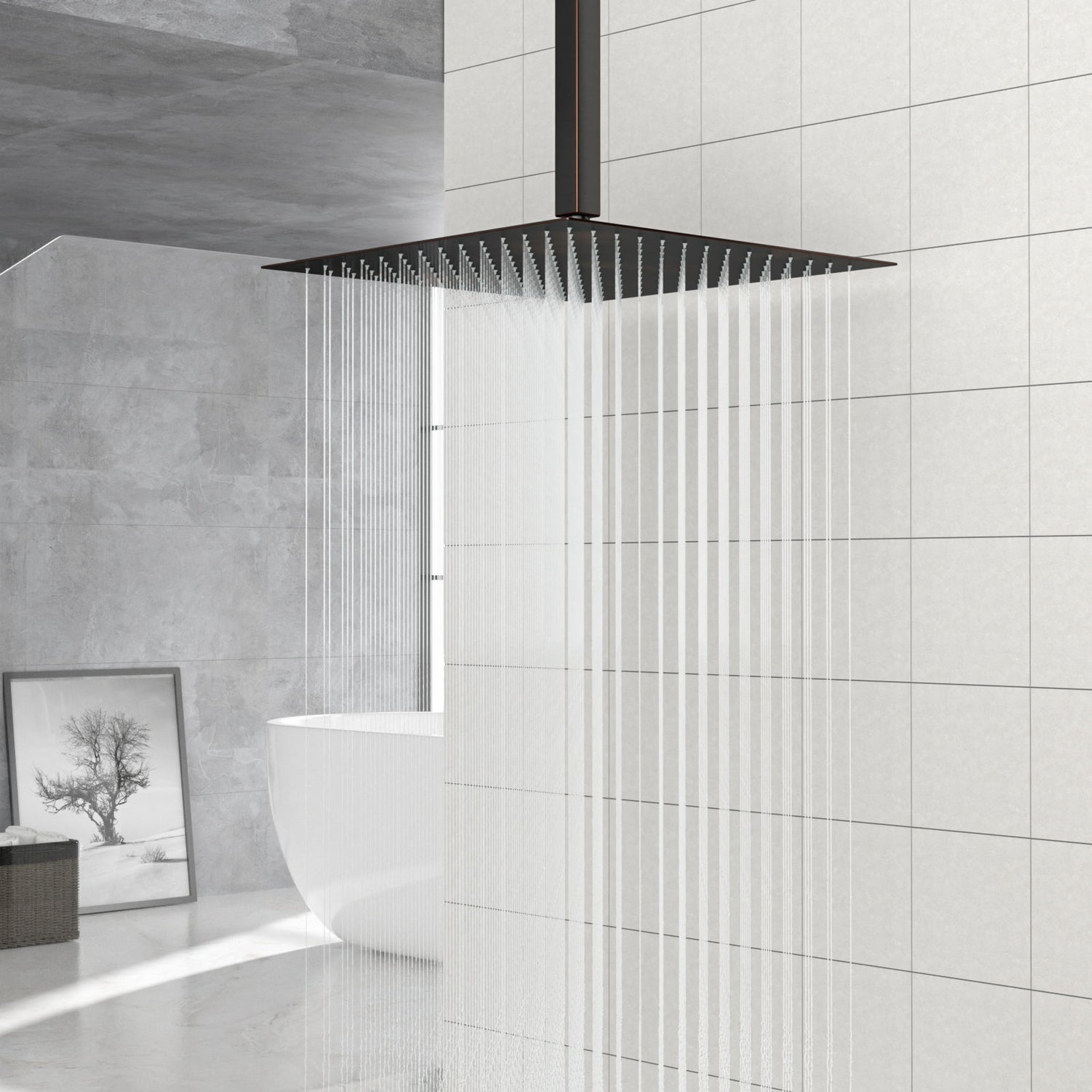 Elegant 16" Square Rainfall Shower Head, Wall / Ceiling Mounted, Oil Rubbed Bronze, Stainless Steel - Oil-Rubbed Bronze