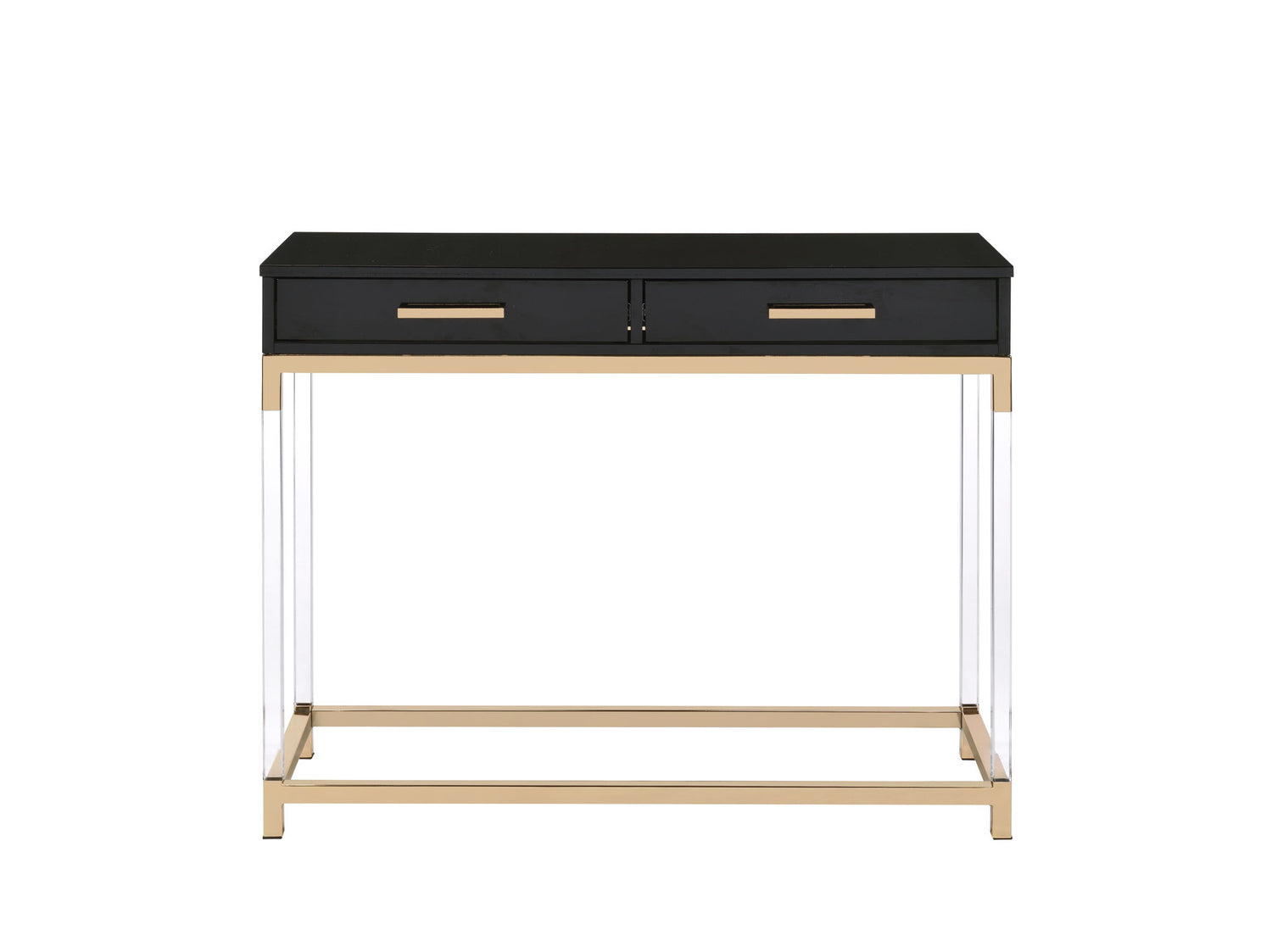 - Modern Design: The Adiel Black & Gold Finish Sofa Table features a sleek metal frame with a rich black rectangular tabletop, offering a contemporary and sophisticated appearance.
