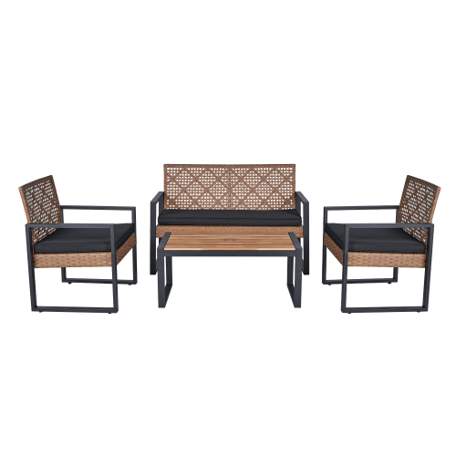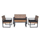Create a relaxing outdoor retreat with this modern 4-piece patio set, featuring a double chair, two single chairs, and a low table with an acacia wood top. Crafted with rust-resistant steel and water-resistant cushions, it's built for comfort and durability in any outdoor setting. Perfect for porches, balconies, or backyard lounging. Available at Alpine Outlets in Denver, CO.