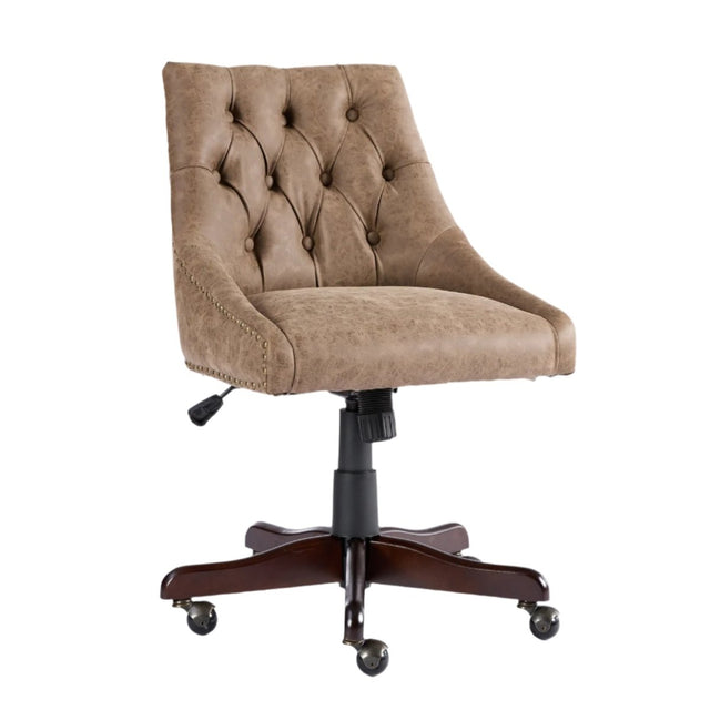 Renvara Retro Sheepskin Pattern Office Chair Brown with Swivel and Lift