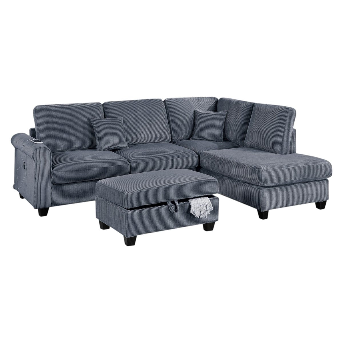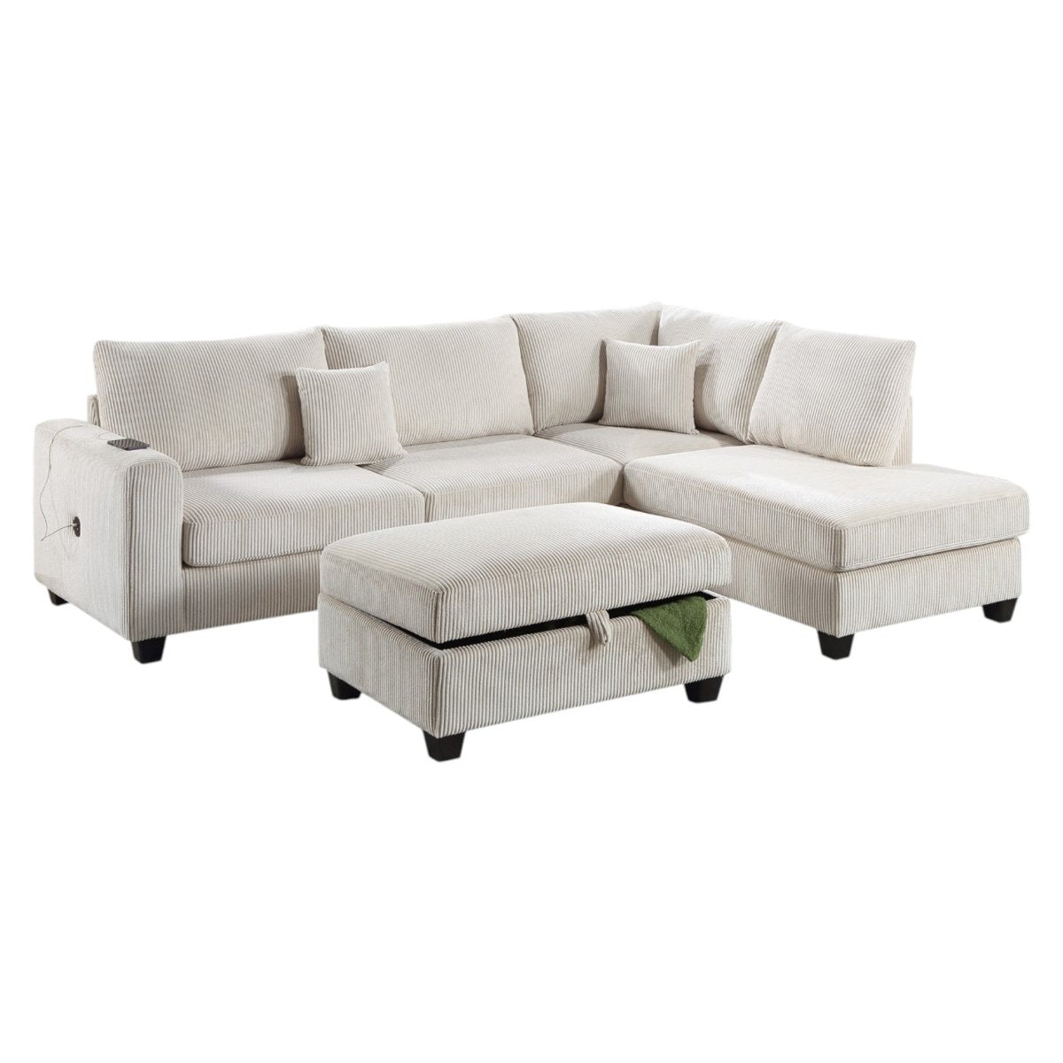 Wesmond 3 Piece Corduroy Sectional Sofa with Storage Ottoman and USB