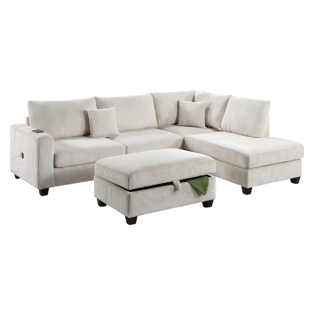 Wesmond 3 Piece Corduroy Sectional Sofa with Storage Ottoman and USB - Beige is backordered and will ship as soon as it is back in stock.